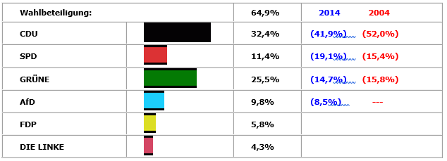 Wahlbeteiligung: 59,5% (Europawahl 64,9%) - Briefwähler ca. 30%
